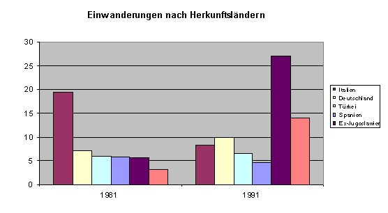 Und dennoch sind die Fakten der Statistiken nicht ganz uninteressant. Wenn wir auf die gegenwärtige Situation einen Blick voller Vorurteile werfen, scheint es, dass die Schweiz derzeitig unter einer Invasion von Ausländern erstickt. Die Statistiken zeigen jedoch, dass der Ausländeranteil der Bevölkerung nicht viel höher ist als Anfang der siebziger Jahre: 17,5 % vor dreissig Jahren und 18,5 % heute. Die Phantome der Ausländer werden dennoch überall gesehen: zum Beispiel in Italien, wo mehr als 50% der Bevölkerung glaubt, dass in ihrem Land zu viele Ausländer wohnen, obwohl diese nicht mehr als 2% bilden. Diese Fakten sind in der Studie "Furcht und Faszination. Facetten der Fremdheit" (Berlin: 1998) vorgelegt, wo aufgrund von offiziellen Daten die Furcht davor relativiert wird.